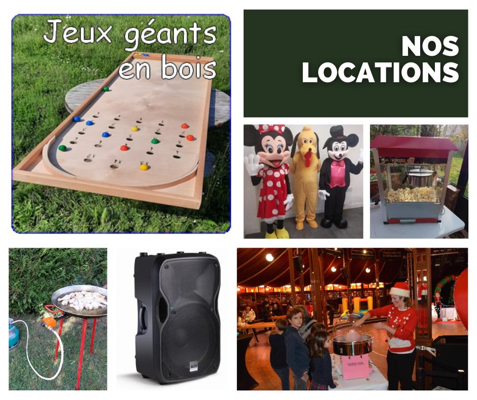 quelle que soit votre fête, pensez à louer chez Blue Ouest Animations, avec la machine à barbe à papa, la machine à pop-corn, les jeux géants en bois, la sonorisation ,